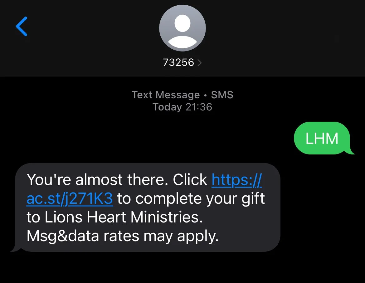 You can give a one-time gift right from your smartphone. Send a text message to 73256 and put LHM in the message body. It will send you a safe and secure link to give your gift.